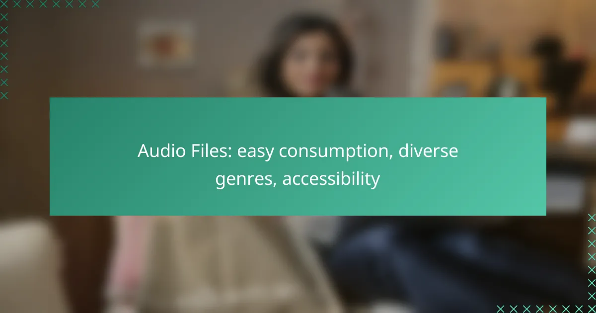 Audio files have revolutionized content consumption by offering easy access to a diverse array of genres, including music, podcasts, and audiobooks. This accessibility not only caters to various listening preferences but also ensures that individuals with different abilities can engage with audio content, making it a versatile medium for all audiences.