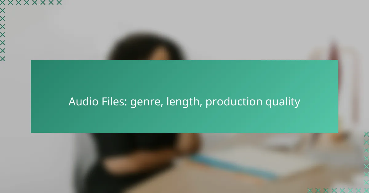Audio files play a vital role in digital products, with genres such as pop, electronic, podcasts, and audiobooks appealing to diverse audiences. The length of these files can greatly impact listener engagement, as shorter formats often maintain attention better, while longer pieces allow for deeper exploration. Additionally, high production quality is essential for clarity and consistency, ensuring that audio content is both enjoyable and professional.