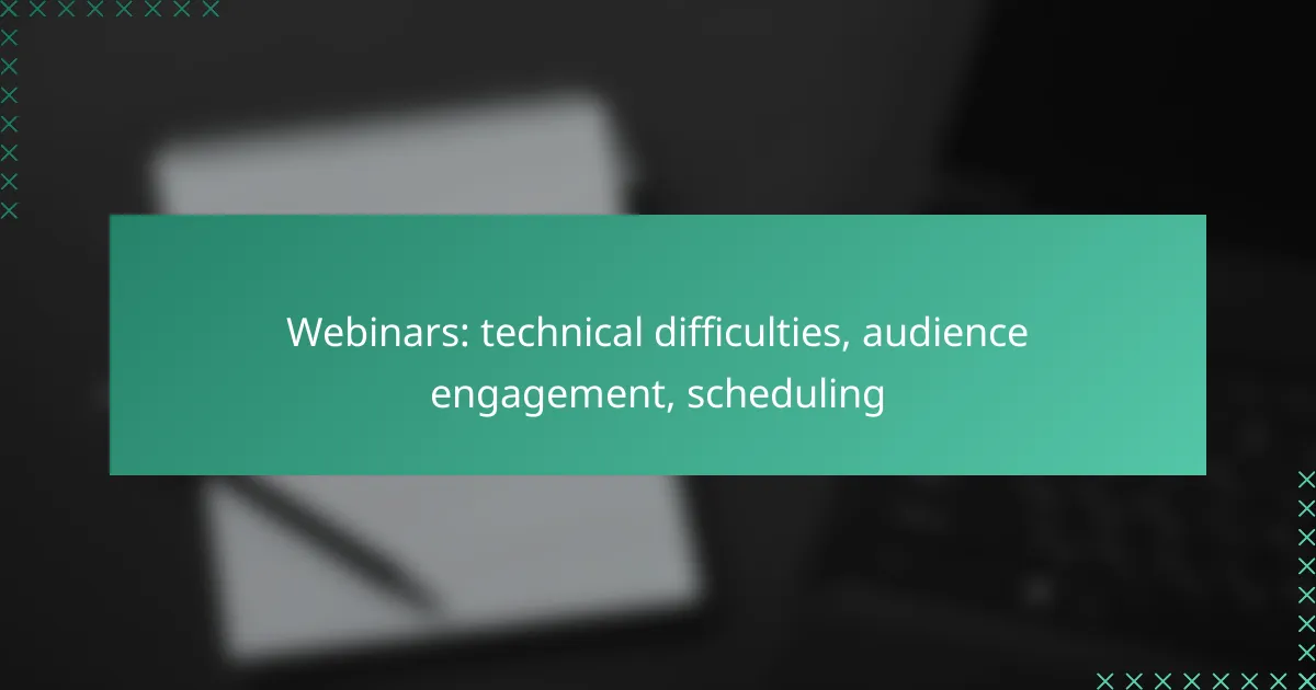 Webinars can be a powerful tool for communication, but they often come with technical difficulties such as audio issues and connection problems that can hinder engagement. To ensure a smooth experience, it’s vital to test equipment and use reliable software while also incorporating interactive elements like polls and Q&A sessions to keep the audience engaged. By addressing these challenges proactively, presenters can create a more effective and enjoyable webinar experience.