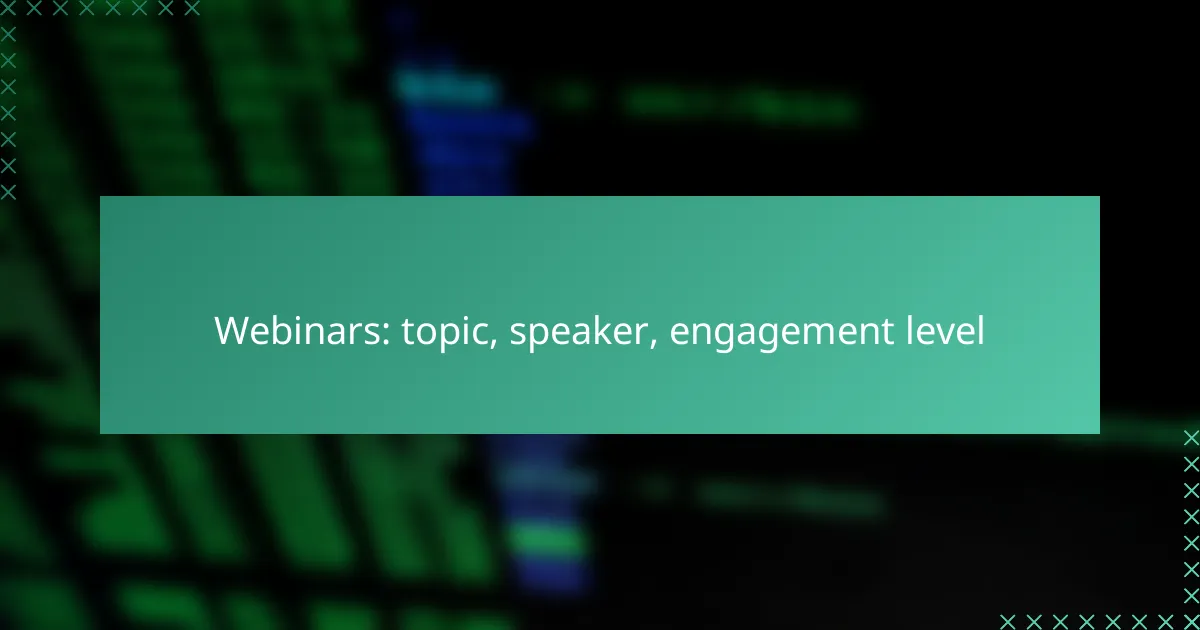 Choosing the right topic for your webinar is crucial for attracting participants and enhancing engagement, especially in the UK market. Selecting speakers who can captivate the audience while providing valuable insights is equally important, as they can significantly influence the overall experience. Incorporating interactive elements like polls and Q&A sessions can further boost audience participation and retention, making your webinar more impactful.